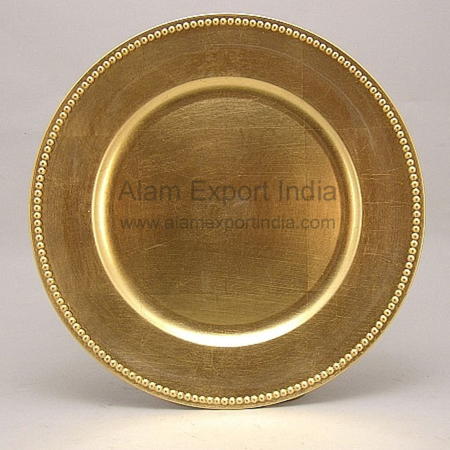New Factory Wholesale Price Bulk Wedding Event Party Dinnerware Sets Custom Color 13inchs 33cm Gold Iron Handpainted Plate