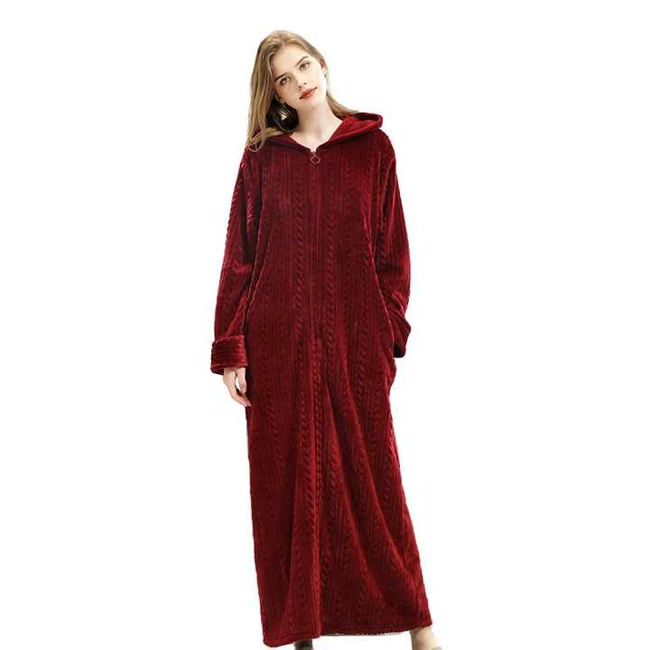 winter zip-up bathrobe with hooded
