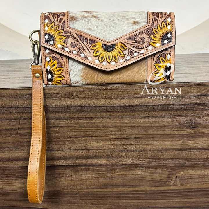 New Famous Brand Tooled Cowhide Leather Clutch Bag Women Evening Handbag Fashion Mini Wristlet Purse Trendy Designer Pouches