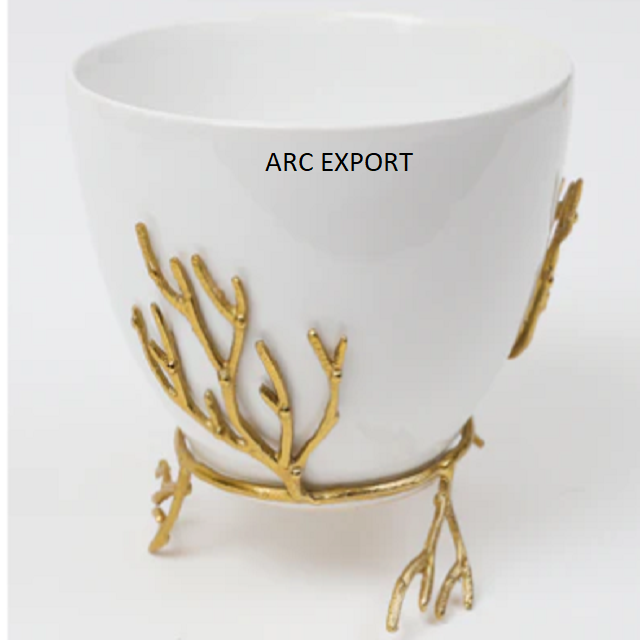 New Fancy Designer White Bowl With Golden Stand Decoration Designer Bowl Table Decorative Serving Bowls for Home Hotel Use