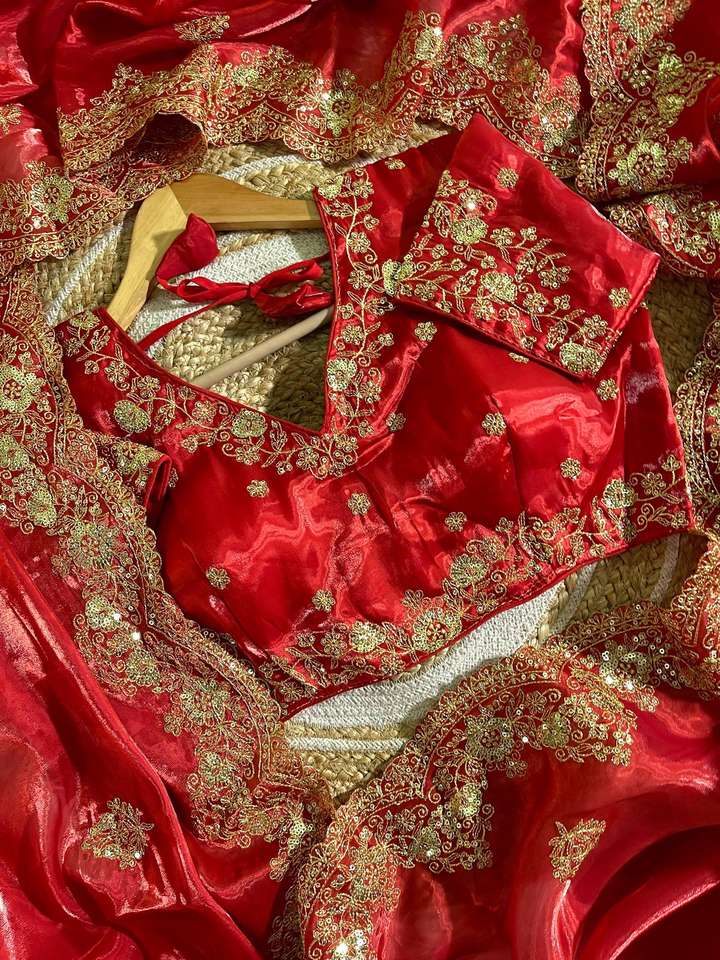 New Fancy Latest Designer Dress Heavy Quality Pure Soft Silk Saree Blouse With 3 mm Sequence Embroidery Work for Sale