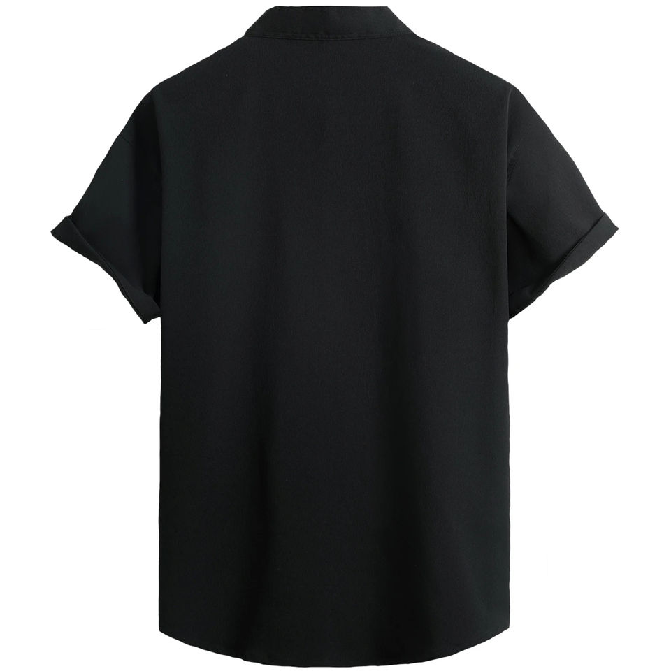 New Fashion 2024 Summer Men's Plain Shirt Stand Collar Breathable Solid Color Casual Button-Down Black Dress Shirts for Men
