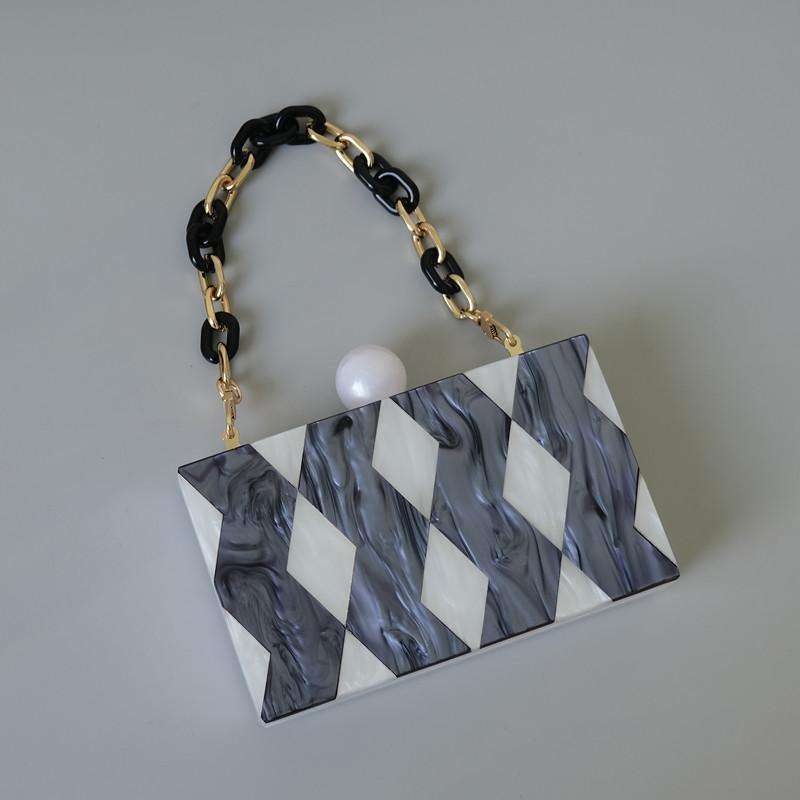 New Fashion Accessory Women Cute Bag resin Blue Striped Dinner Handbag Woman Wedding Evening Bag Trendy Party Box Clutch Purse