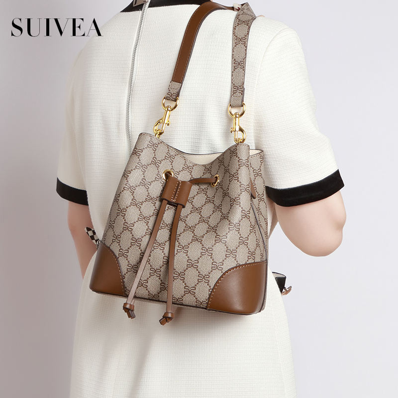New Fashion Bag Woman Simple Old Flowers Drawstring Bucket Bag Senior Sense of Large Capacity Tote Handbags for Women Crossbody