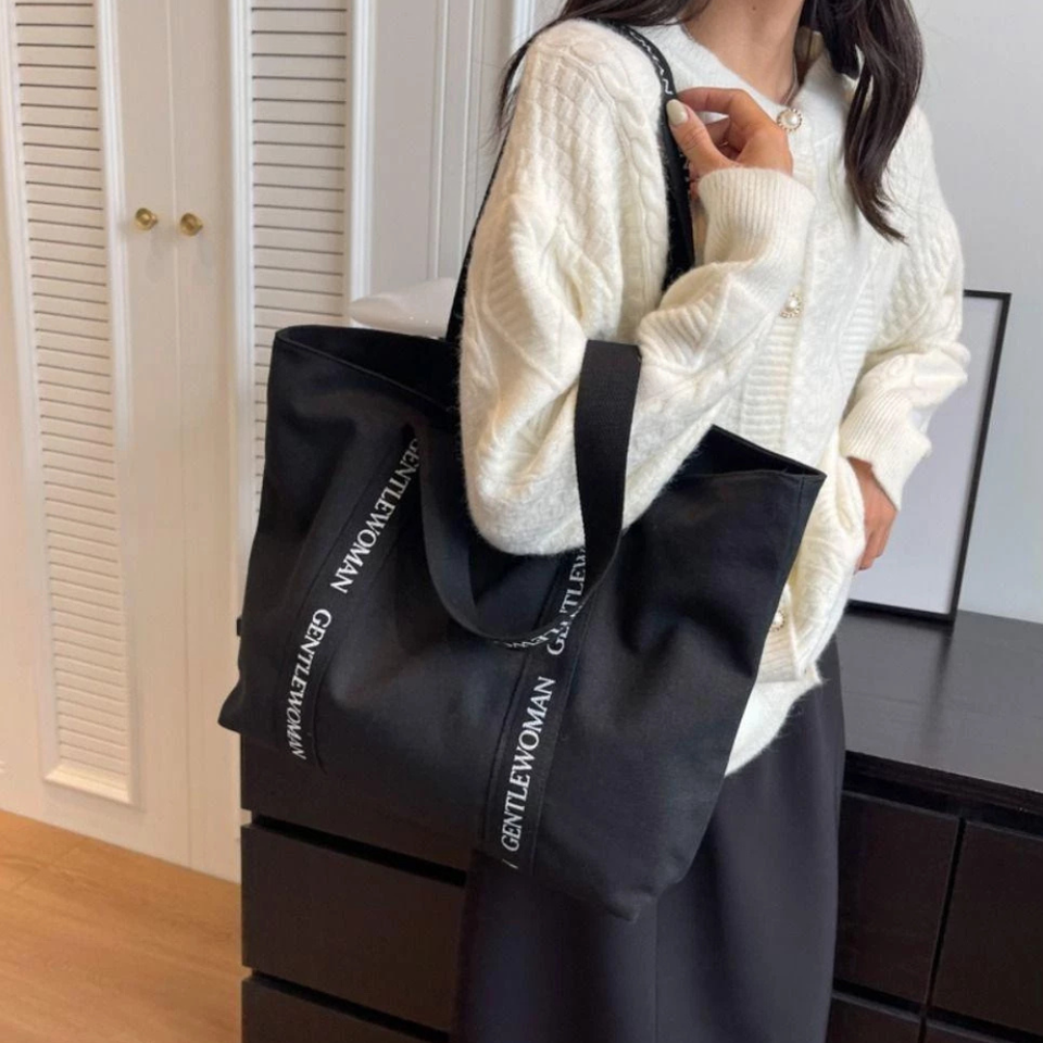 New Fashion Black Crossbody Mini Cotton Canvas Bag Custom Square Printed Letter Small Tote Bag for Shopping Shoulder Application