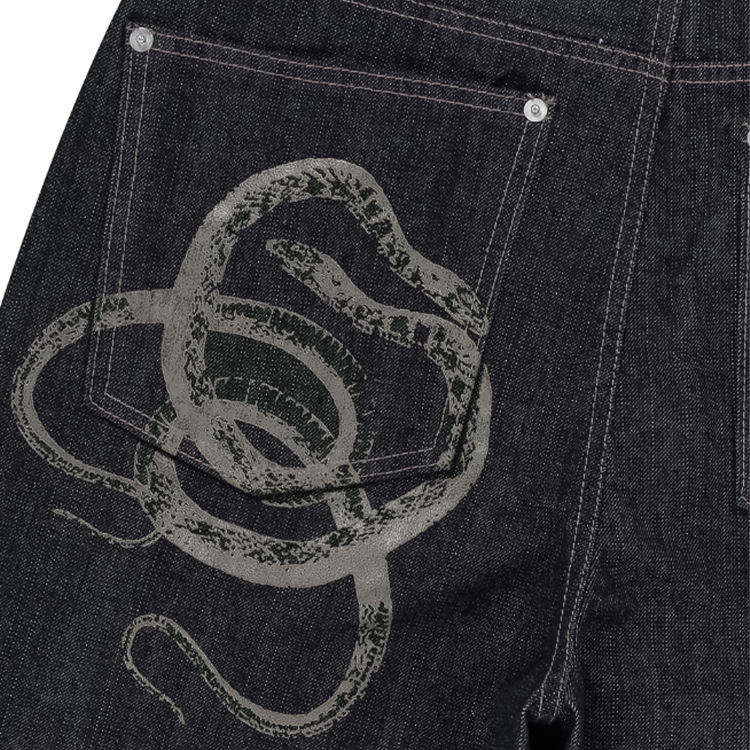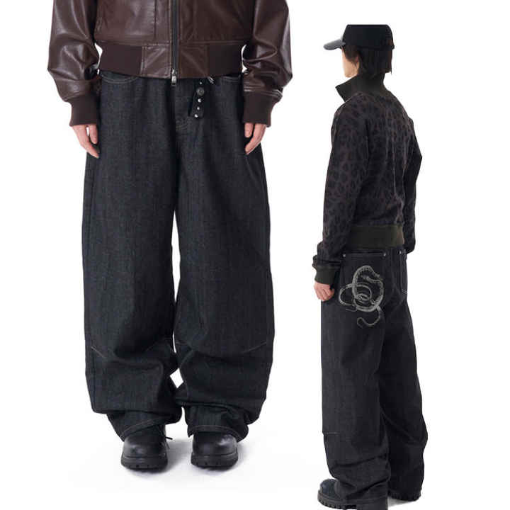 New Fashion Black Japanese Selvedge Denim Unisex Balloon Fit Washed Y2k Printed Loose Soft Breathable Straight Winter Hip Hop