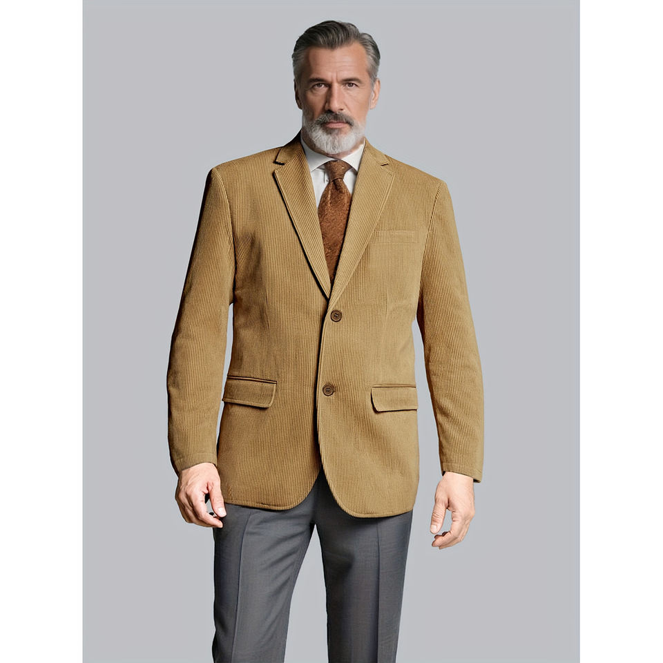 New Fashion Brown Corduroy Jacket for Men Casual Regular Fit Button Front Long Sleeve Blazer Coat