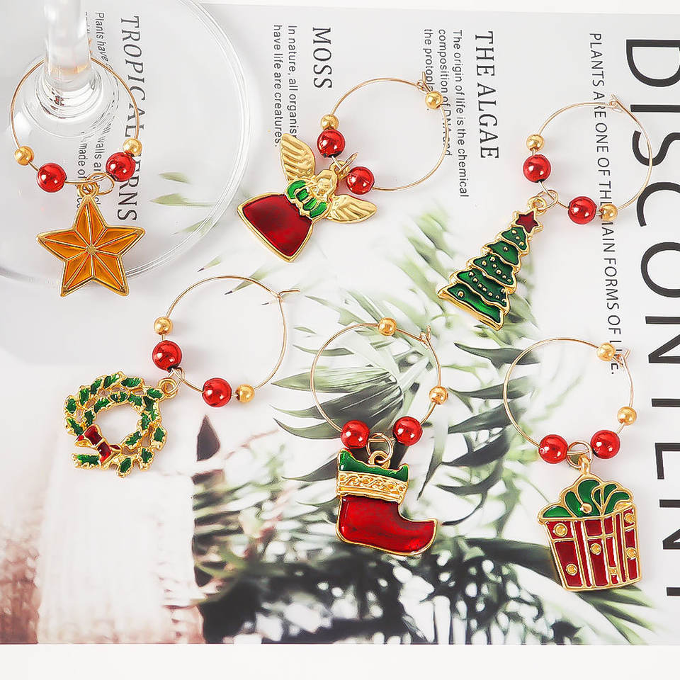 New Fashion Christmas Design Wine Glass Charms Rings Marker Christmas Wine Charms for Stem Glasses Markers Glass Tags