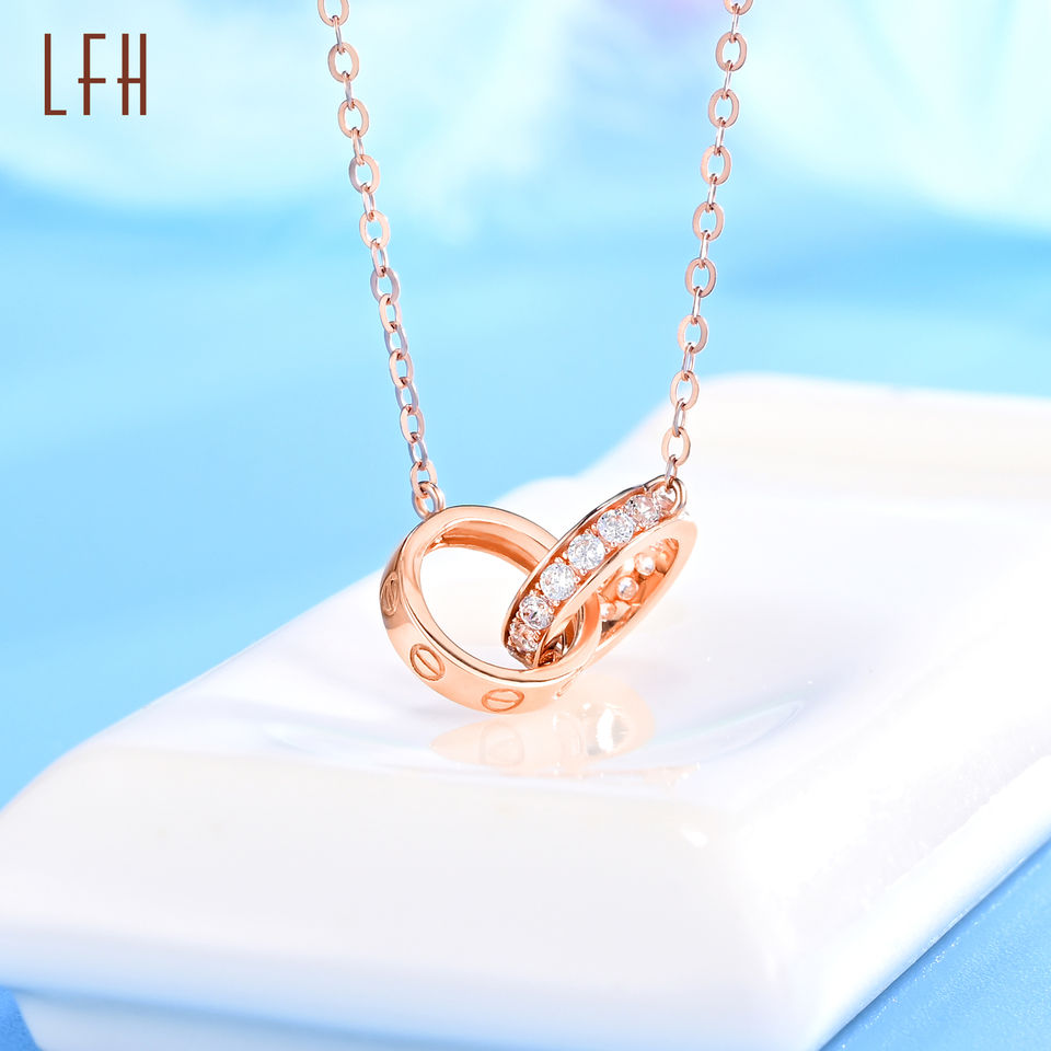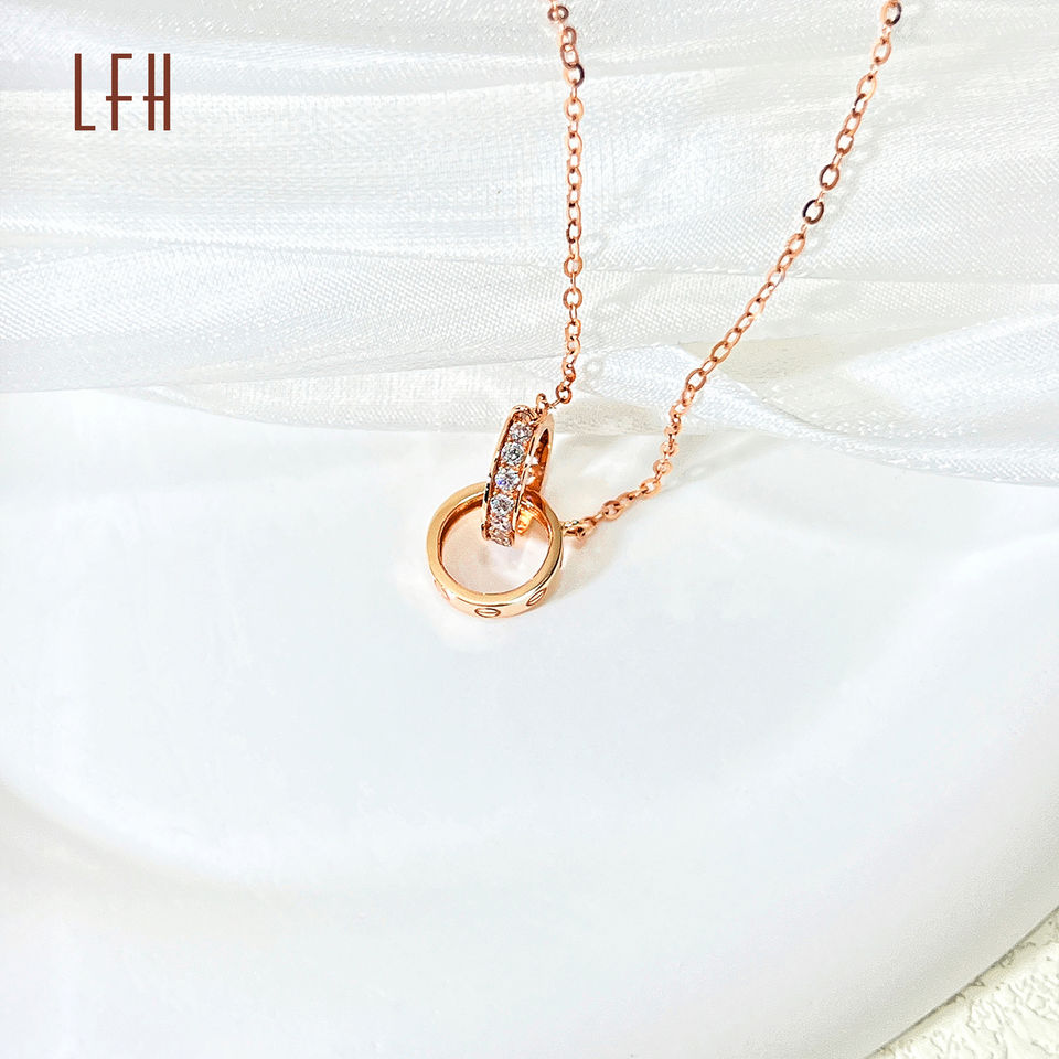 New Fashion Copper Double Round Pendant Rose 18k Real Gold Rhinestone Double Circomele Necklace Jewelries 18k Gold for Women