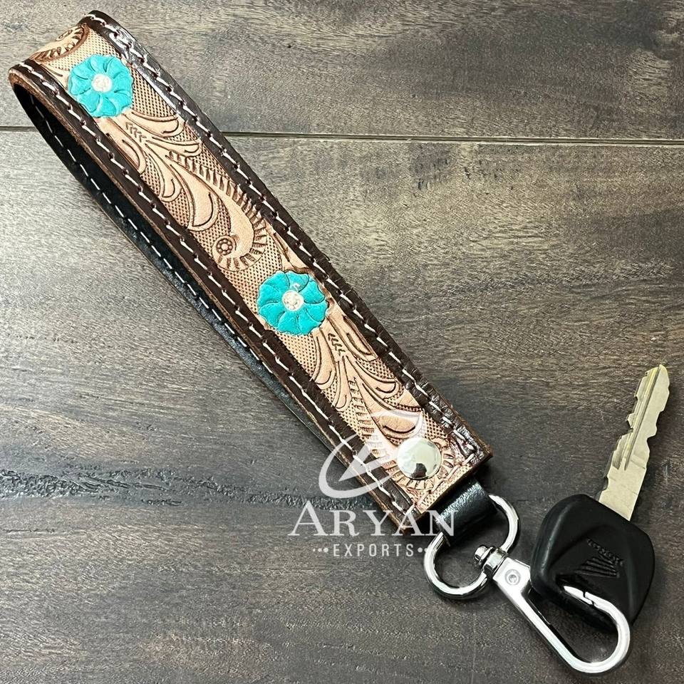 Product Name:Hand Tooled Genuine Leather Wristlet Keychain
