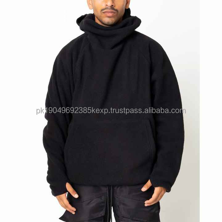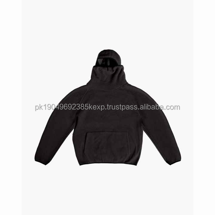 New Fashion Custom Logo Embroidery Double Layer Hooded Pullover Balaclava Hoodies Men Full Zip Thermal 100% Cotton 340g