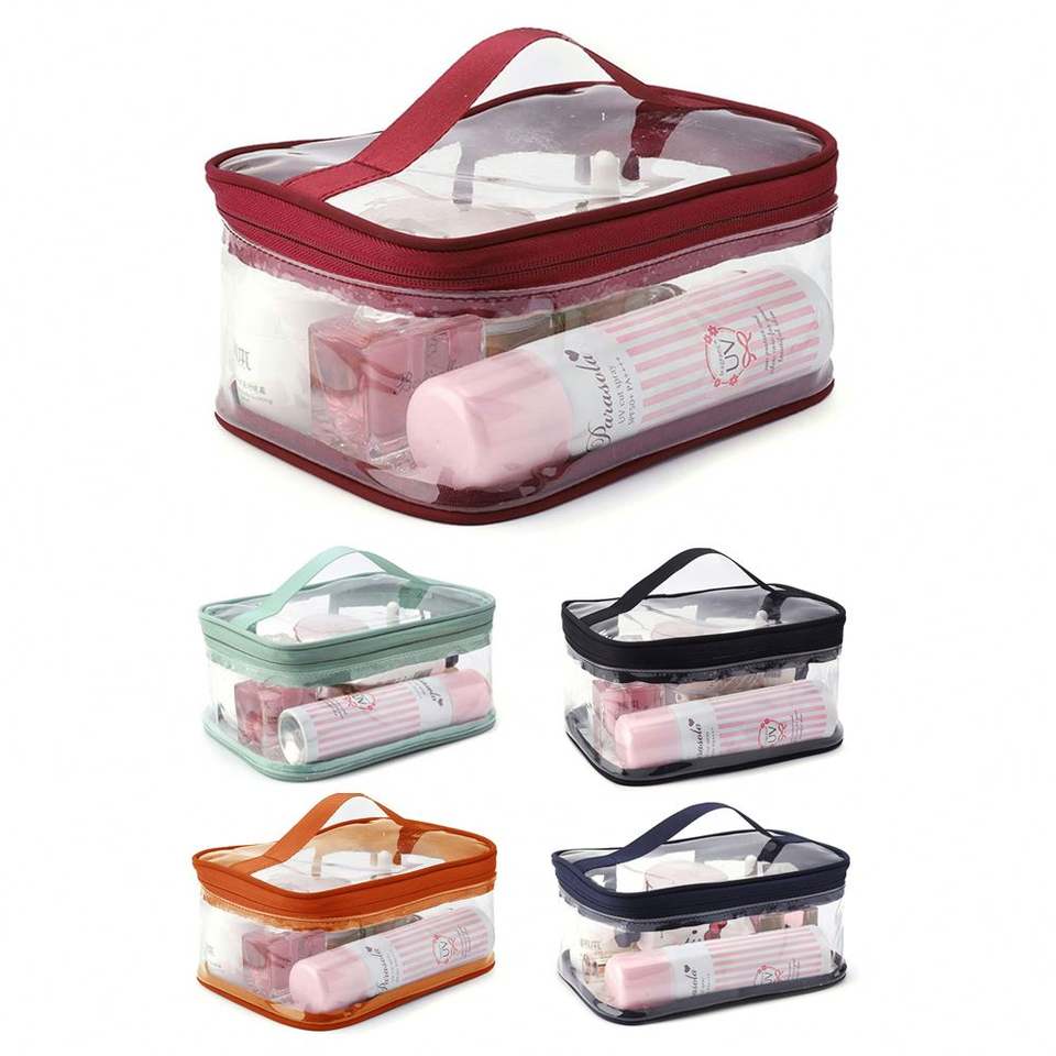 New Fashion Custom Women's Clear Makeup Bag Organizer Transparent PVC Cosmetic Zipper Pouch for Travel Toiletries Letter Pattern