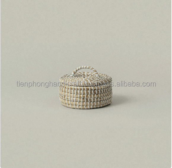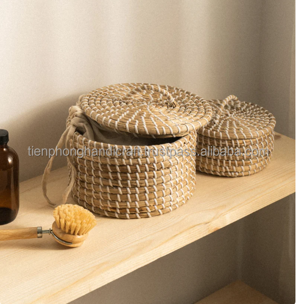 New Fashion Design Handmade Woven Storage Basket Straw Storage Bin Seagrass Woven Basket With Lid