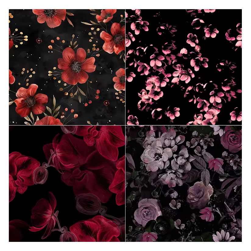 New Fashion Digital Printing Dark Red Purple Floral Pattern 100% Polyester Koshibo Crepe Koshibo Print Fabric for Dresses