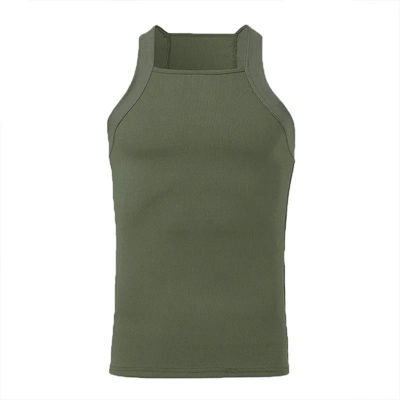 New Fashion Eco-Friendly Quick Dry Sports Tank Tops Men's Print Square Collar Sleeveless T-shirt Spandex/Cotton Gym Streetwear