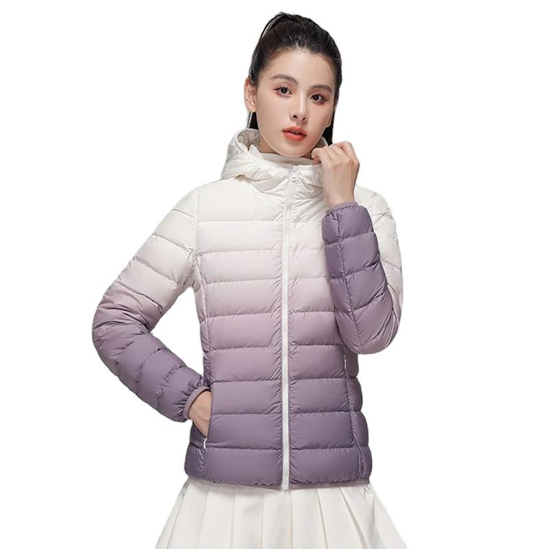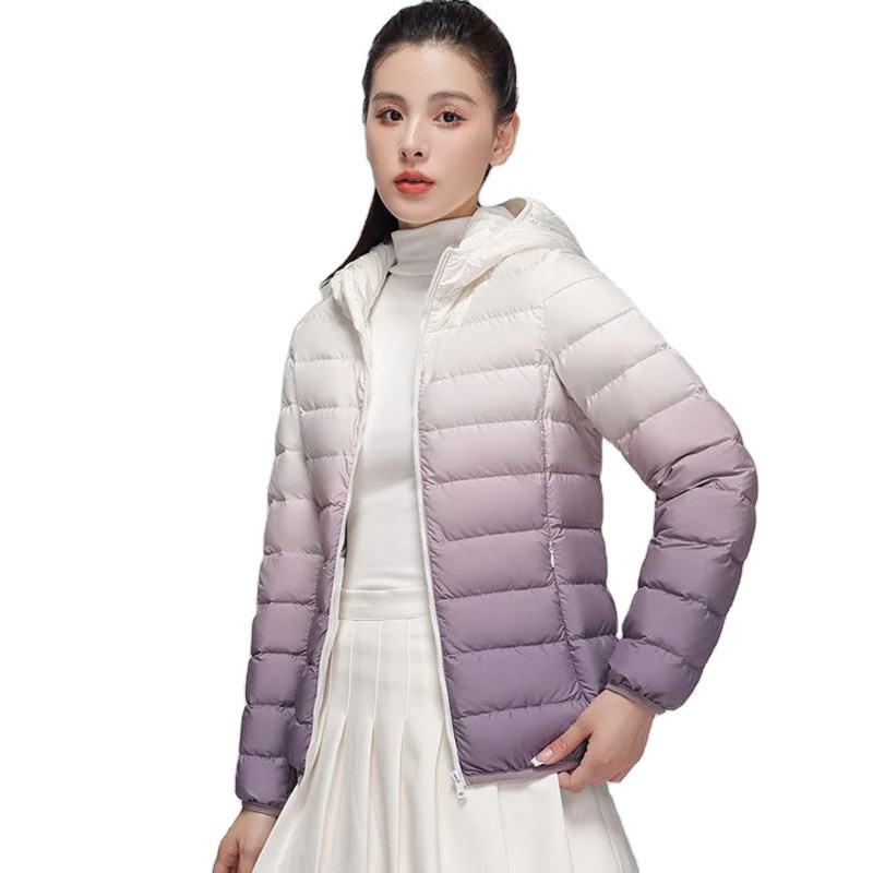 New Fashion Gradient Jacket for Women Winter Hooded 90% Duck Filled Coat Ultra Light Autumn Warm Parkas Windbreaker Breathable