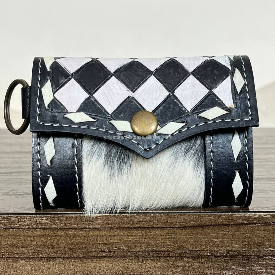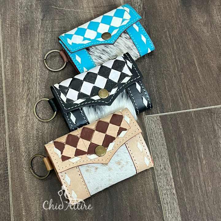 Hand Tooled Checkered Pattern Mini Coin Purse