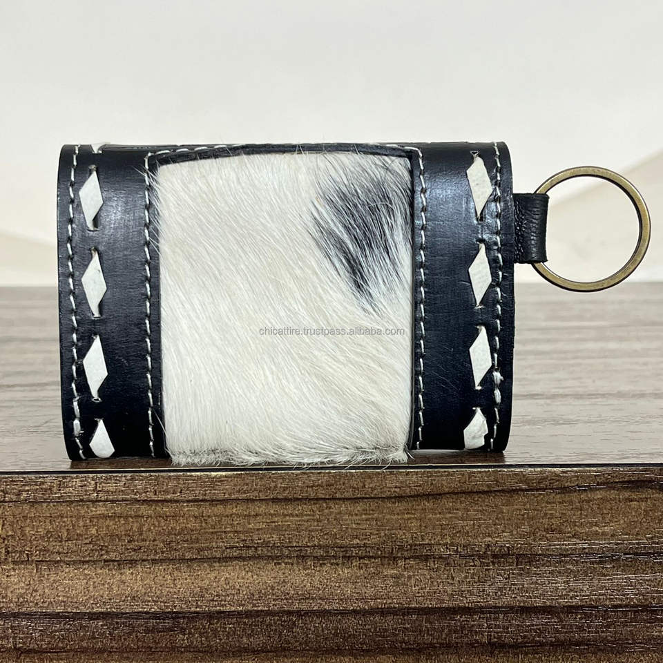 New Fashion Hand Tooled Checkered Leather Small Wallets Trendy Luxury Designer Style Hanging with Keychain Mini Card Coin Holder