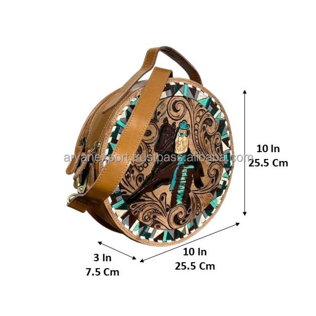 New Fashion Hand Tooled Cow Leather Round Shoulder Bag Wholesale Bohemian Women Crossbody Bag Cowgirl Style Bag Gift for Her