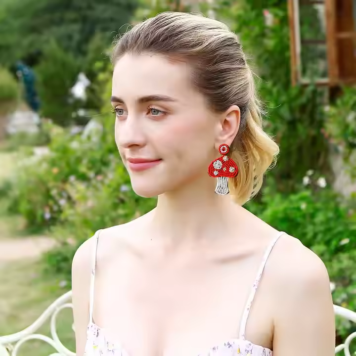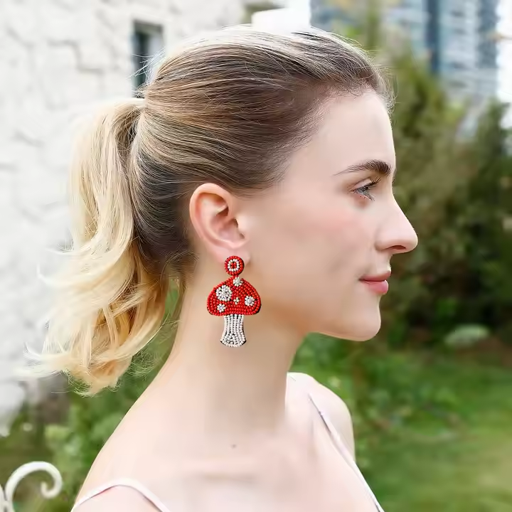 New Fashion Handmade Beaded Mushrooms Classic Drop Earrings Red Seed Beads Cute Girls Women