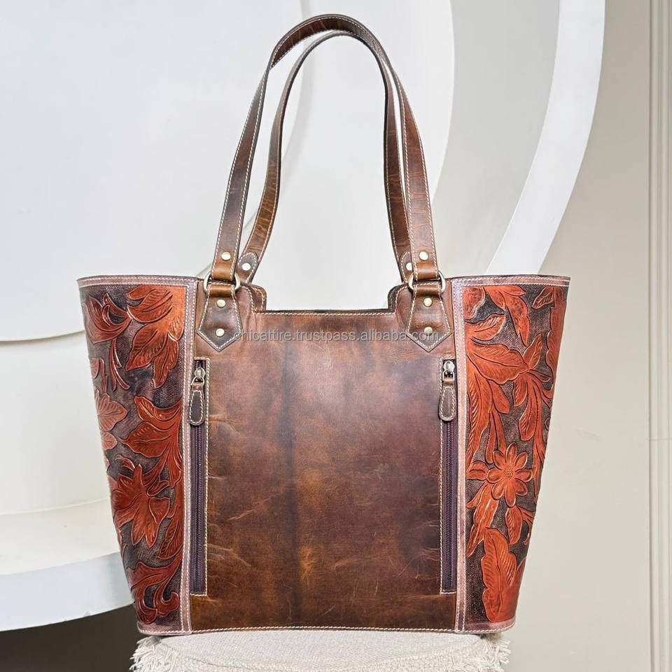 Product name:Hand Tooled Genuine Leather Large Tote Bag