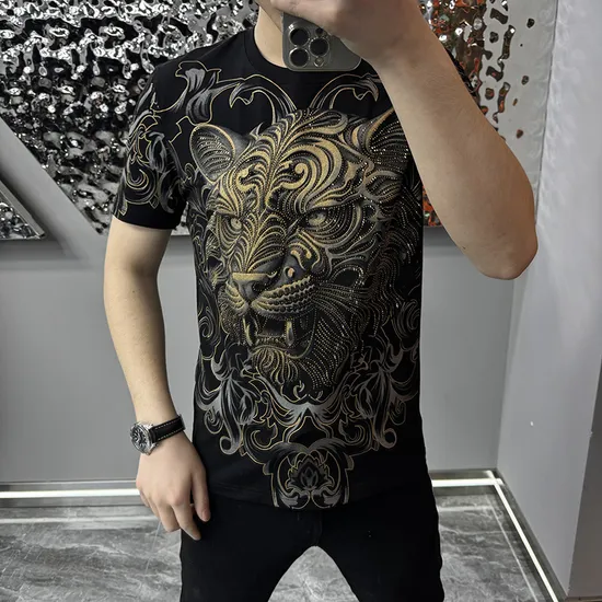 New Fashion Hot Drill Rhinestone Oversized Tshirt Custom Your Design logo Shine Glitter Rhinestone Luxury Men's T-shirts