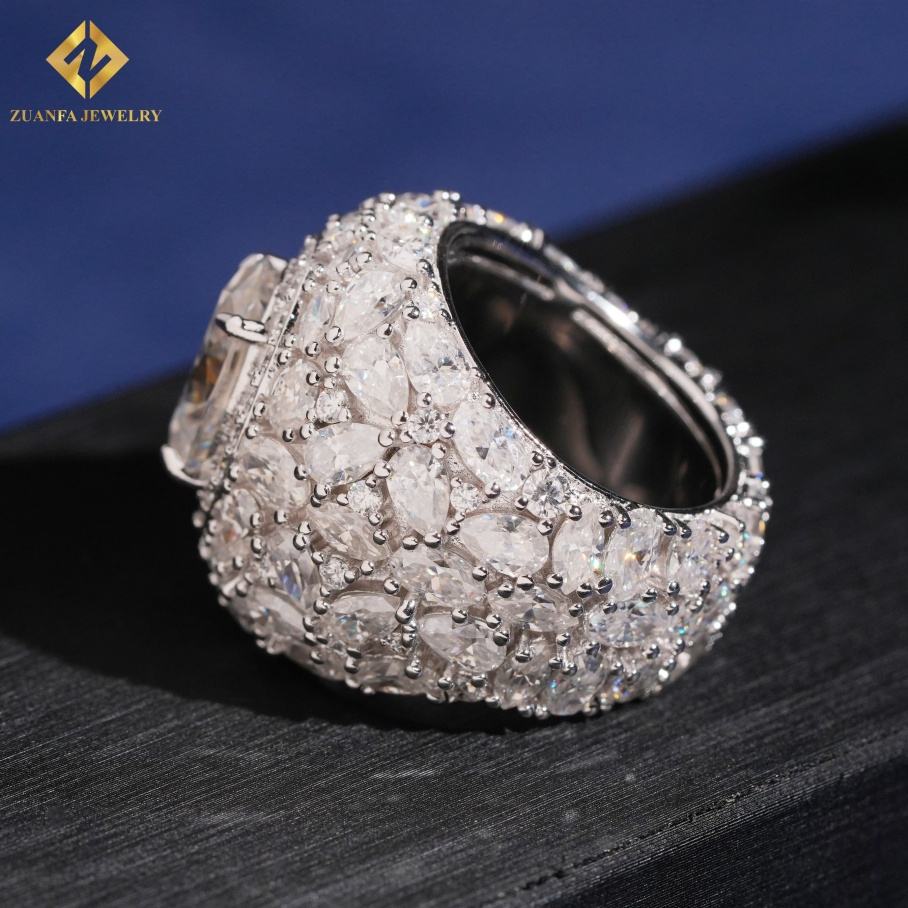 New Fashion Jewelry Iced Out Hip Hop Men VVS Diamond 26ct 925 Sterling Silver Moissanite Ring GRA Certificated