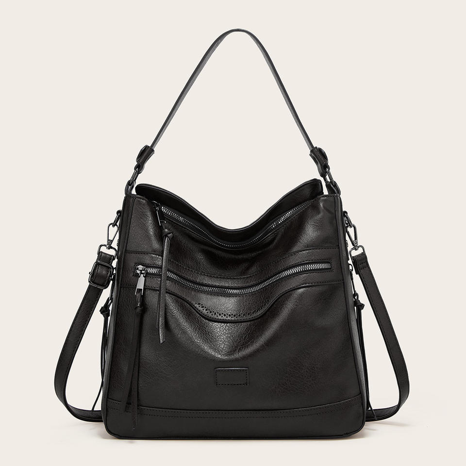 New Fashion Large Capacity Zippered Women's Tote Bag PU Material Polyester Lining Europe Design Single Shoulder Crossbody Bag