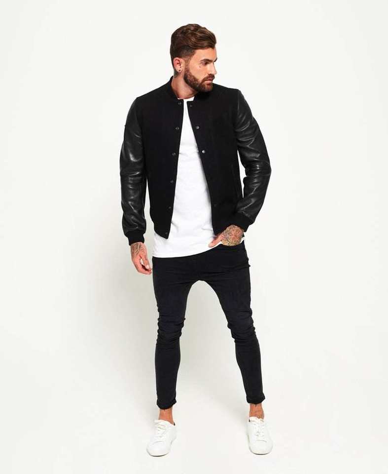 New Fashion Leather Varsity Jacket High Quality Waterproof Breathable Stand Collar Men Oversize Button Winter Jacket