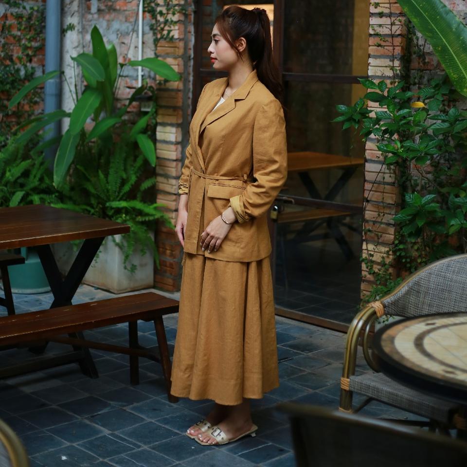 New Fashion Long-sleeved Tie Ramie Jacket With Front Flap and Side Pockets