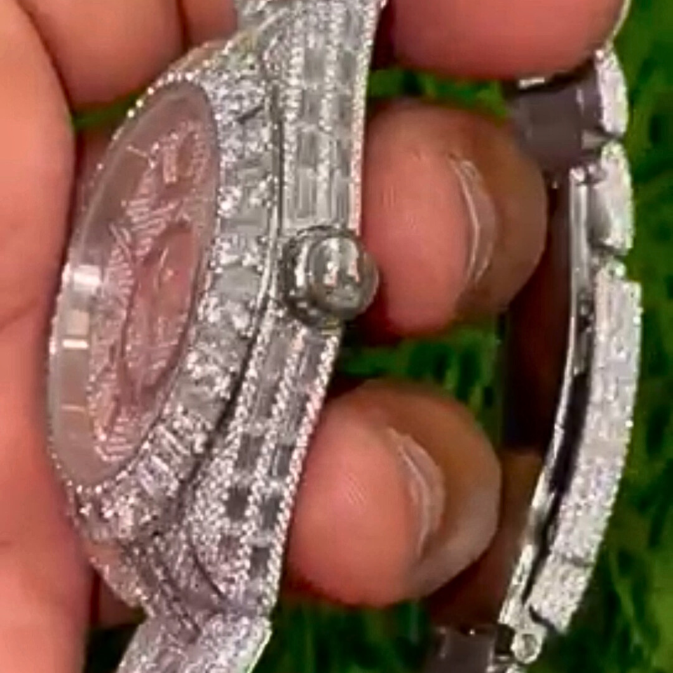 New Fashion Luxury Business Antique Stainless Steel Full Iced Out Baguette Vvs Moissanite Mens Watches Exporter India