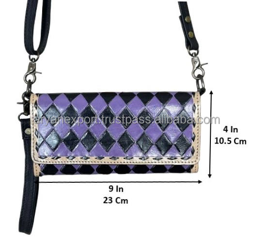 Product name:Hand Tooled Checkered Leather Crossbody Mini Bag