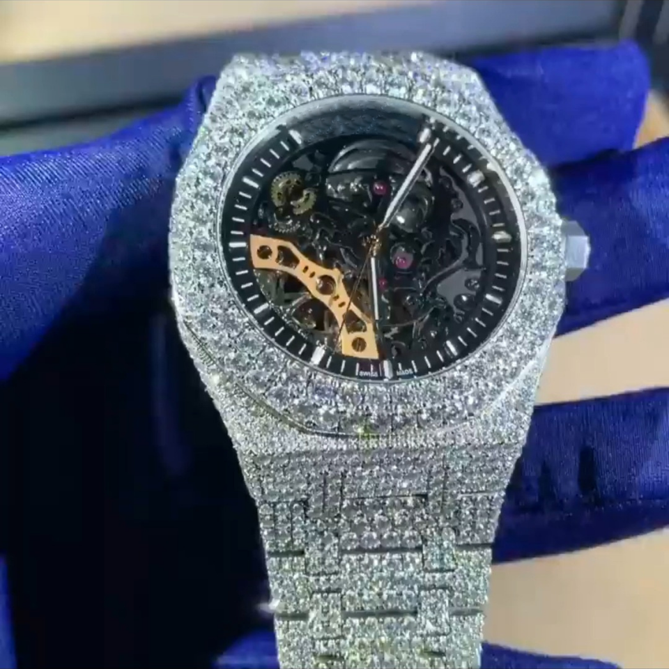 New Fashion Luxury Watch Stainless Steel Full Iced Out Baguette Vvs Moissanite Diamond Mens Watches Exporter From India