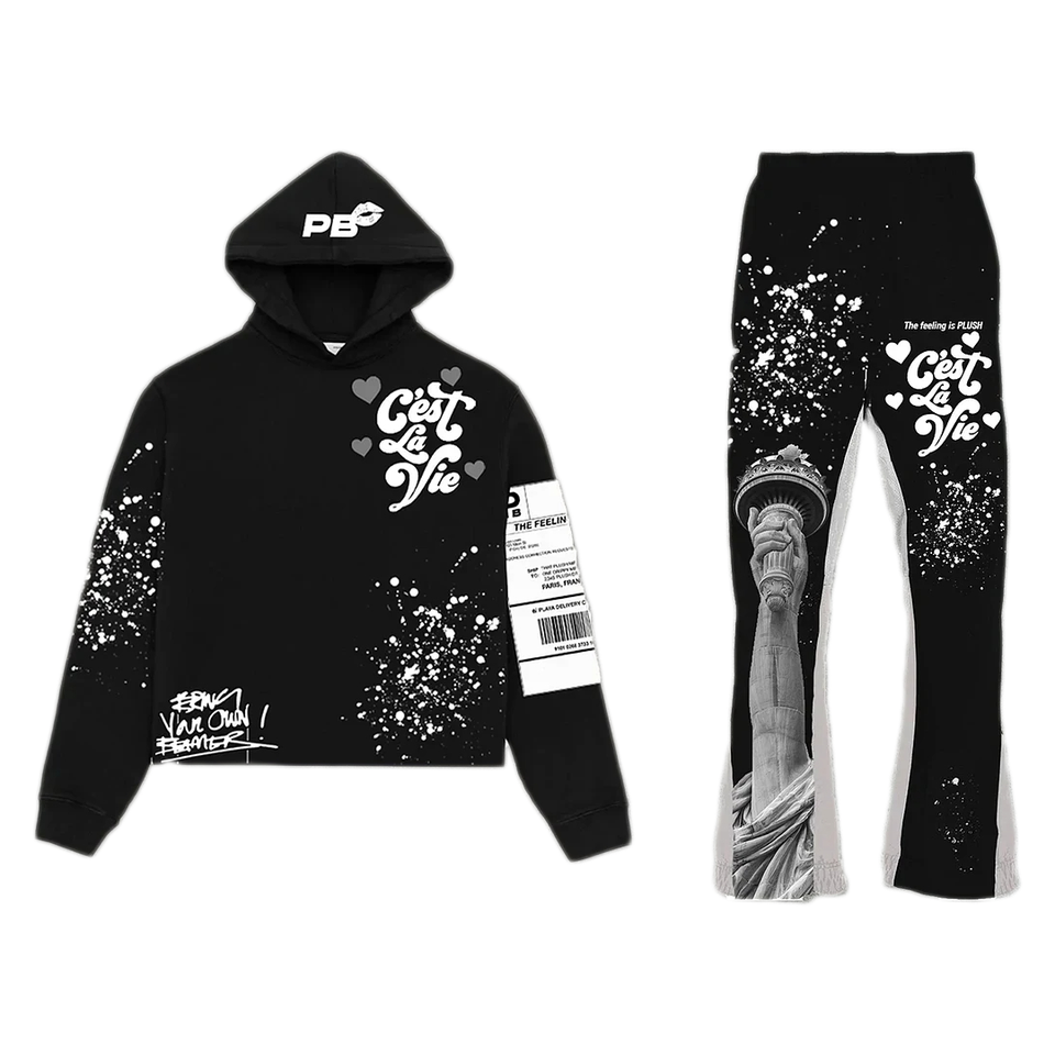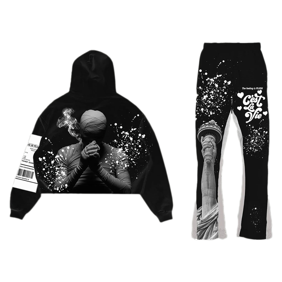 New Fashion Men's Custom Crop Hoodie Tracksuit Patch Embroidery Washed Distressed Oversized Streetwear Winter 100% Cotton Jogger