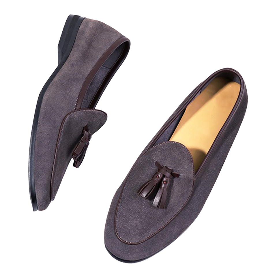 New Fashion Men's Genuine Leather Flats Top Layer Suede Casual Loafer Shoes Slip Lightweight Gray Coffee Spring Summer Autumn