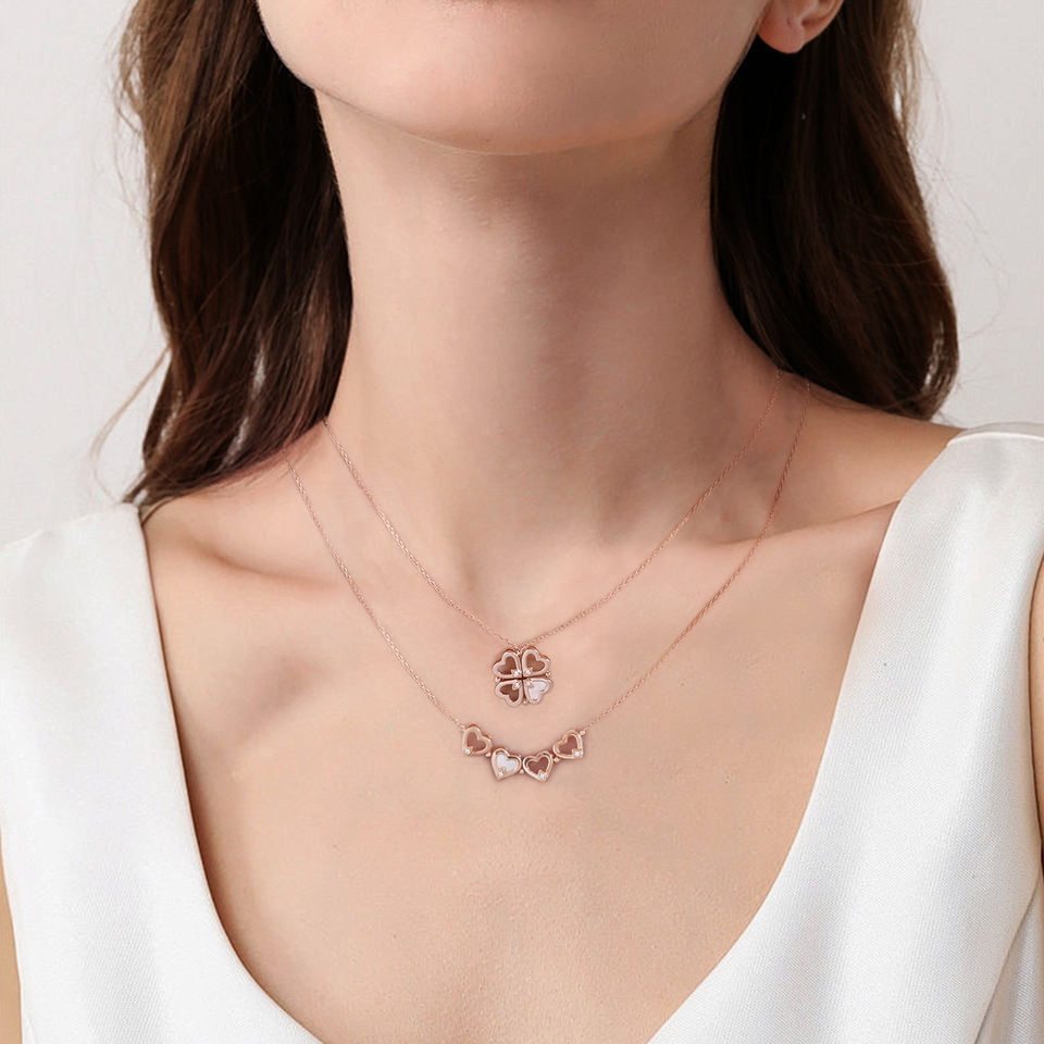 New Fashion Necklace Design Jewelry S925 Silver 18k Rose Gold Plated 4 Leaf Four Clover Heart Multifunction Pendant Necklace