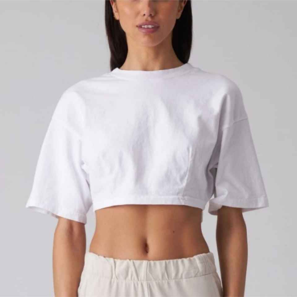 New Fashion Oversized Loose Fit Women's Crop Top Solid Color Quick Dry Soft Round Neck Breathable Sexy Crop Top
