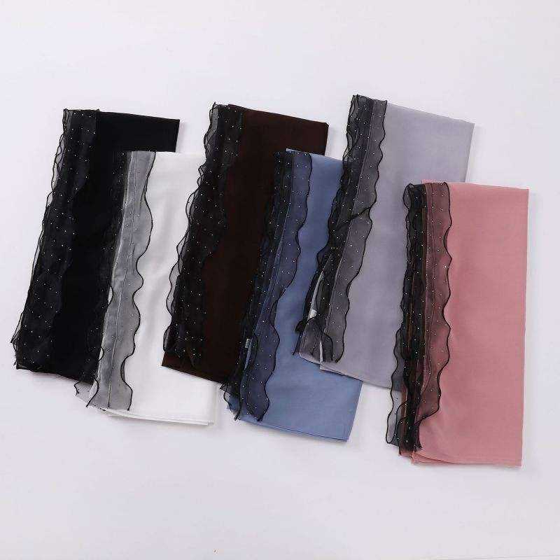 Premium New Fashion Solid Color Long Soft Muslim Custom Turban Scarf Shawl Hijab Top Women's Ethnic Lace Bandanas