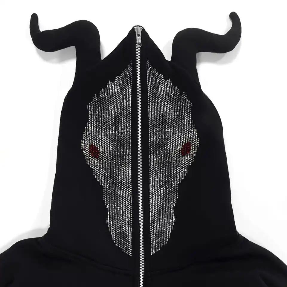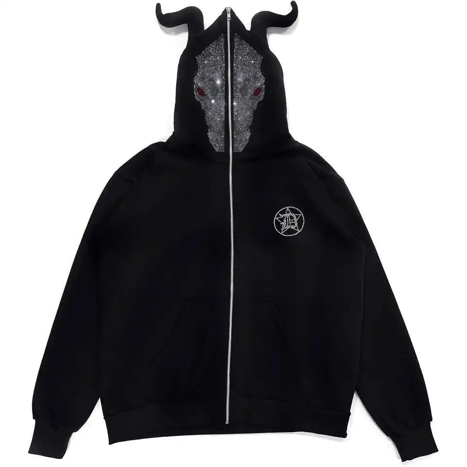 Keywords:Rhinestones hoodie custom logo Full Face y2k zipup hoodie