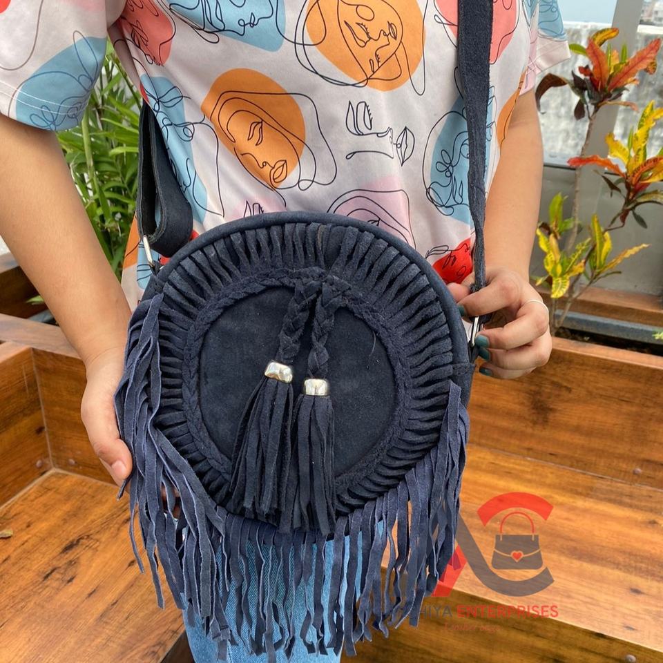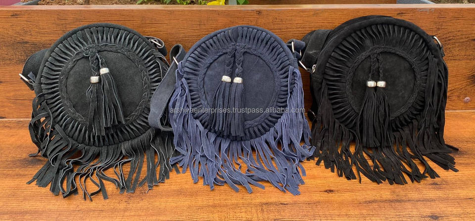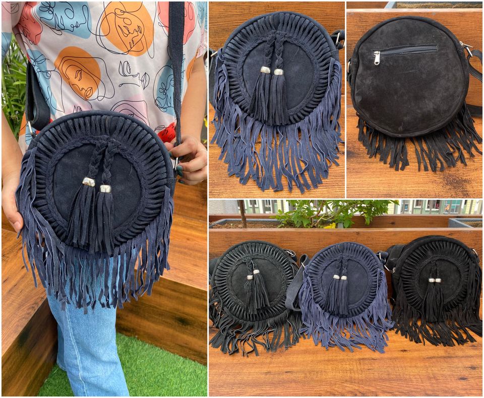 New Fashion Round Suede Leather Fringe Shoulder Bag Wholesale Bohemian Women Crossbody Bag Cowgirl Style Circle Bag Gift for Her