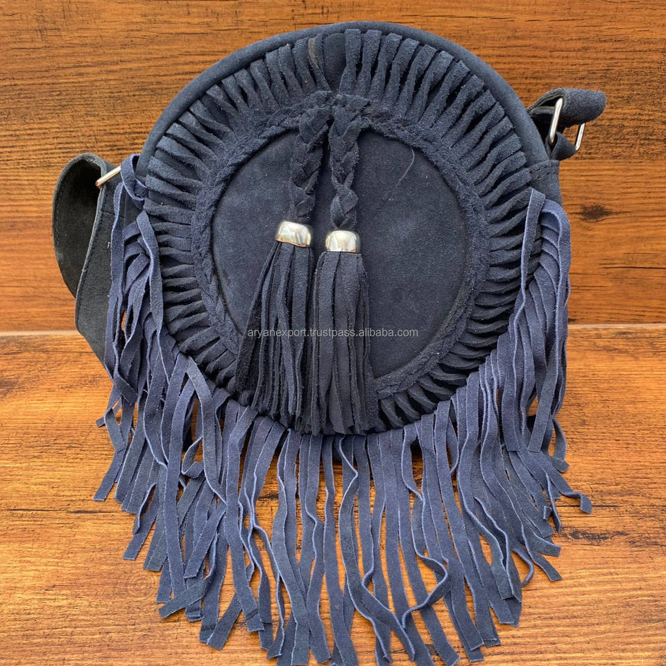 New Fashion Round Suede Leather Fringe Shoulder Bag Wholesale Bohemian Women Crossbody Bag Cowgirl Style Circle Bag Gift for Her