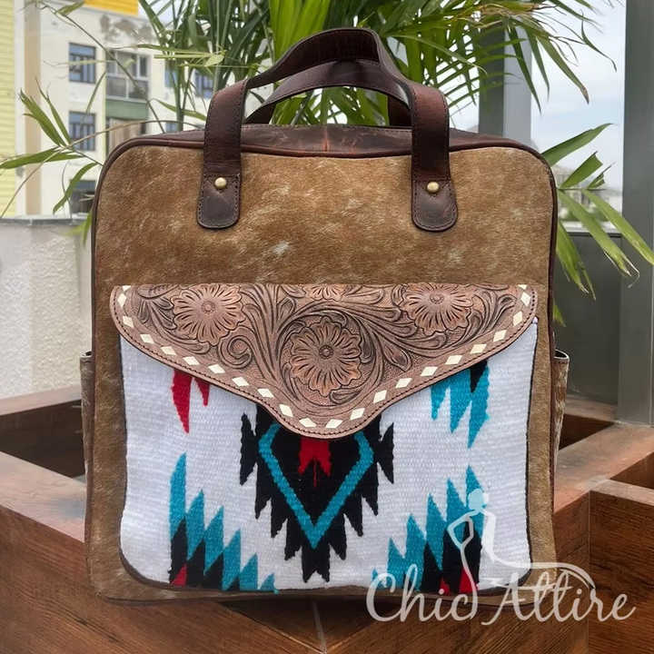 New Fashion Saddle Blanket Hair on Genuine Leather Women Backpack Hand Carved Leather Bag Western Hand Tooled Leather Backpacks