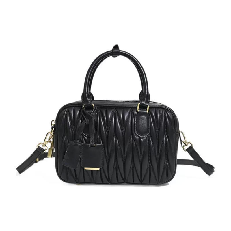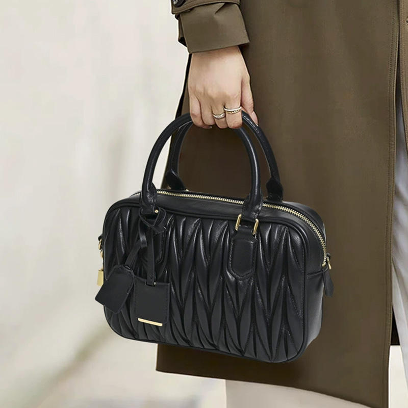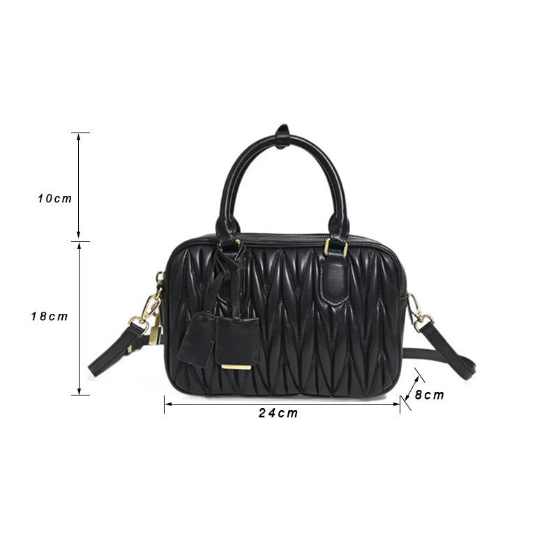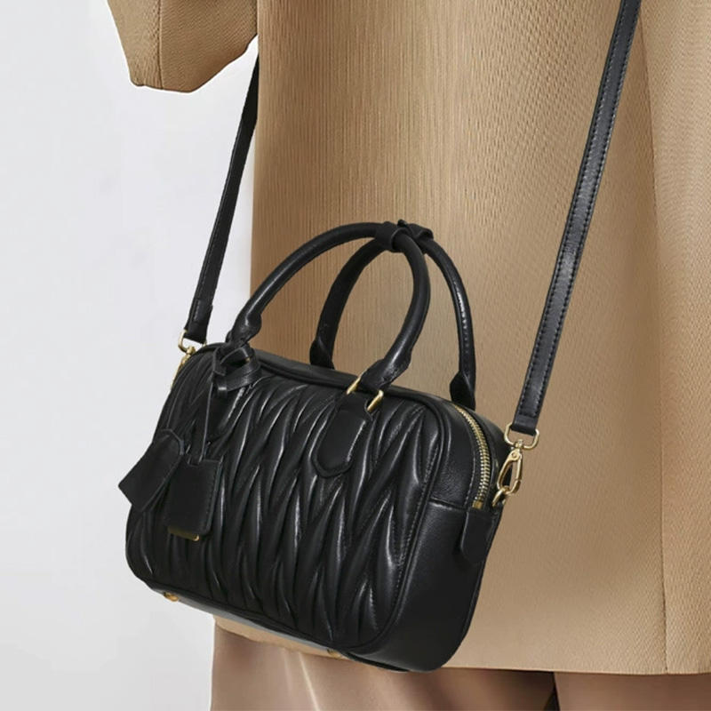 New Fashion Sheepskin Pleated Bowling Handbag for Women Niche High-end Feeling Boston Shoulder Bag Popular Cross Body Bag