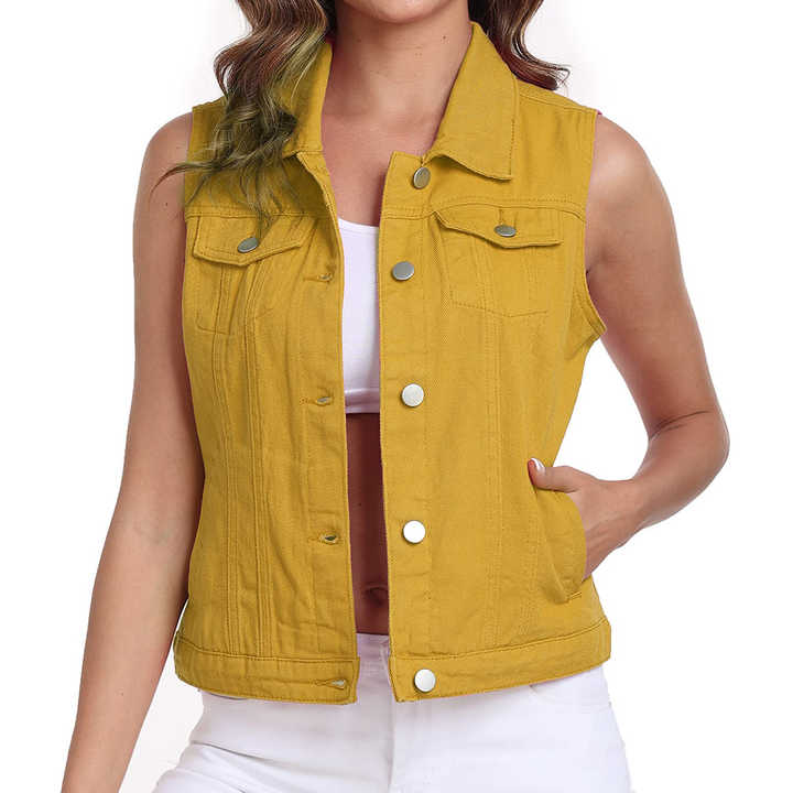 Cotton New Fashion Short Denim Vest Women's Autumn Casual Single Breasted Jeans Waistcoat Plus Size Slim Sleeveless Jacket