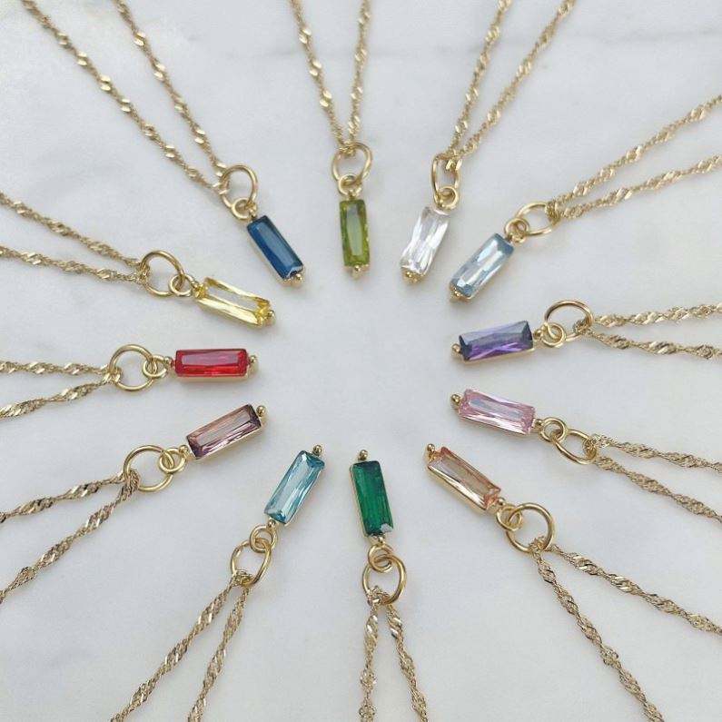 18K Gold Bar 12 Birthstone Pendant Necklace