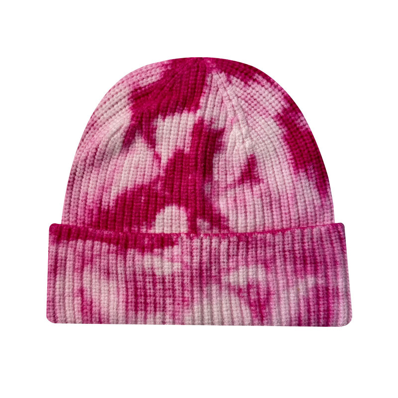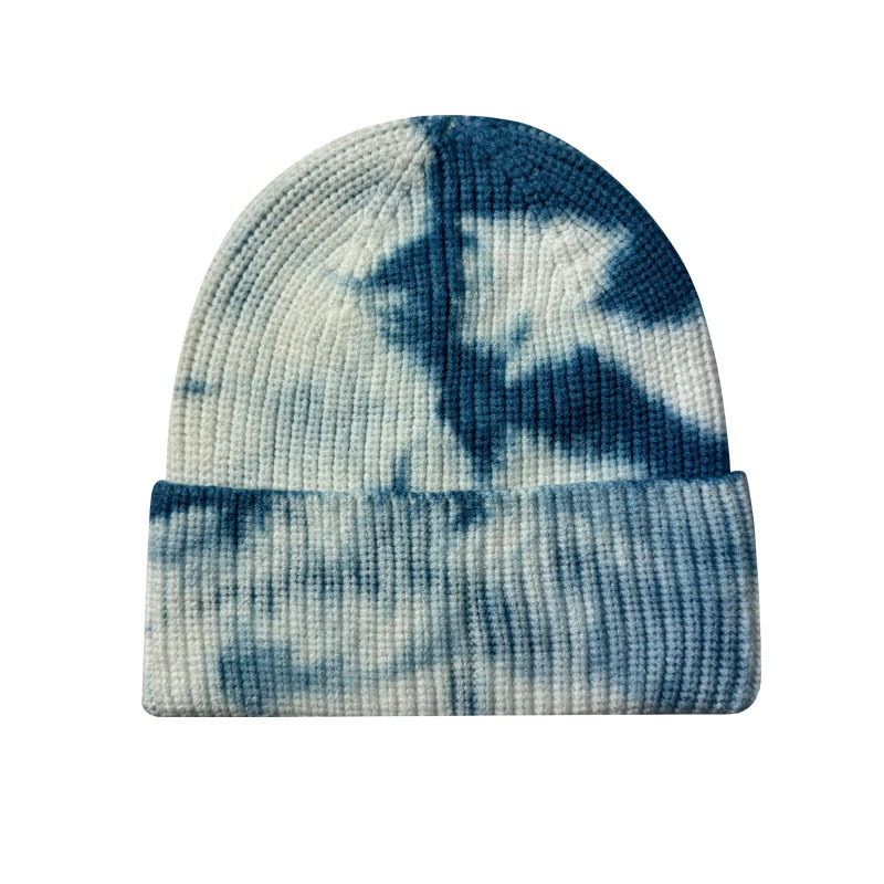 New Fashion Streetwear Hip Hop Caps Winter Wool Knitted Hat Tie Dye Print Warm Skullies Beanies Custom