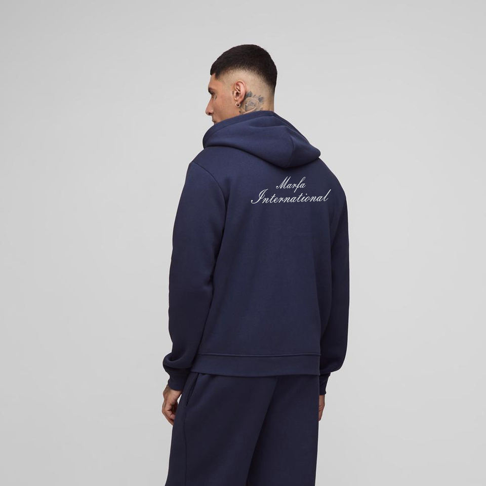 New Fashion Trend High Quality Navy 100% Cotton Zipper-Up Hoodie Solid Color Geometric Pattern Autumn Casual Hoodie for Mens