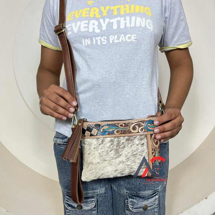 New Fashion Trending Designer Women Hand Tooled Cowhide Leather Crossbody Mini Bag Ladies Elegant Sling Bag Purse for Women's