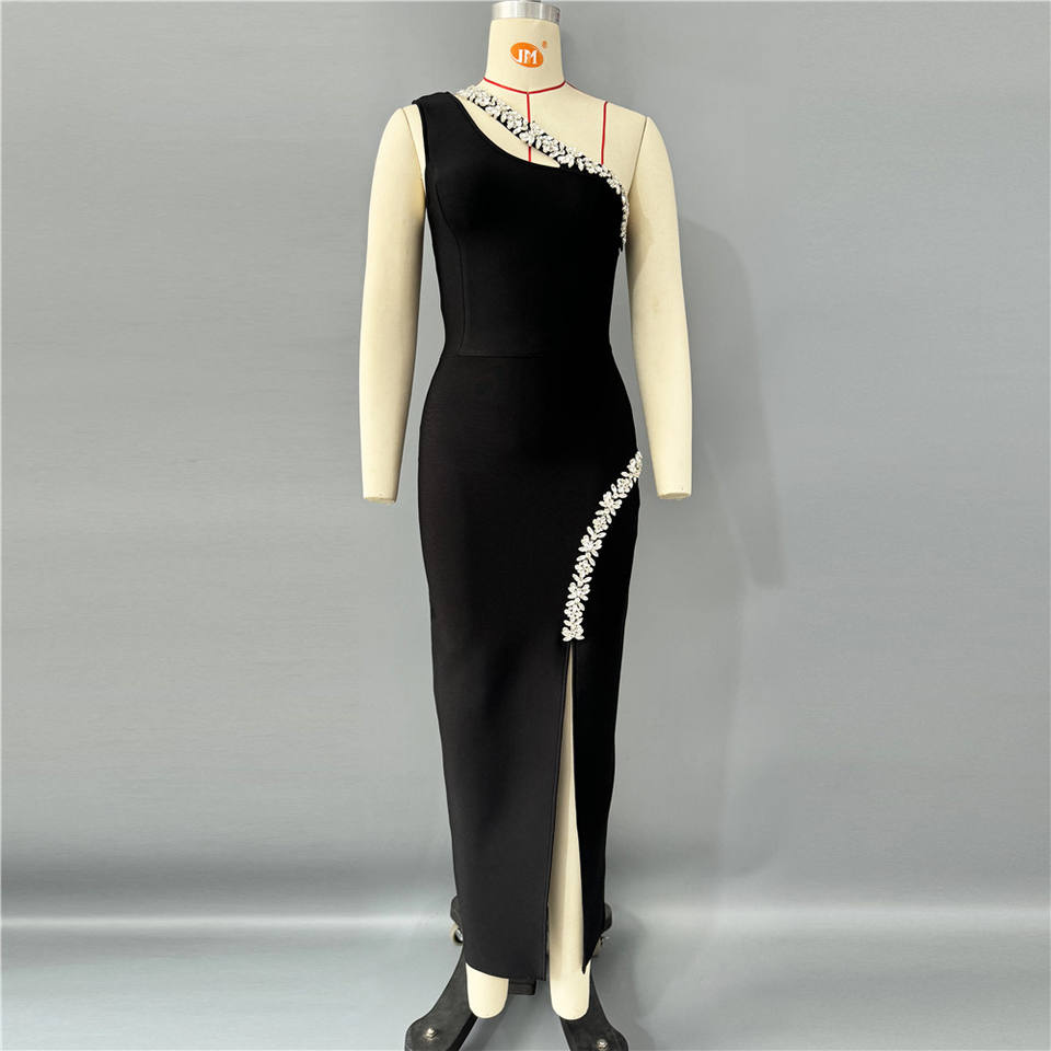 New Fashion Women Sexy Long Sleeved Slit Dress Lady Elegant Pencil Casual Party Long Dress