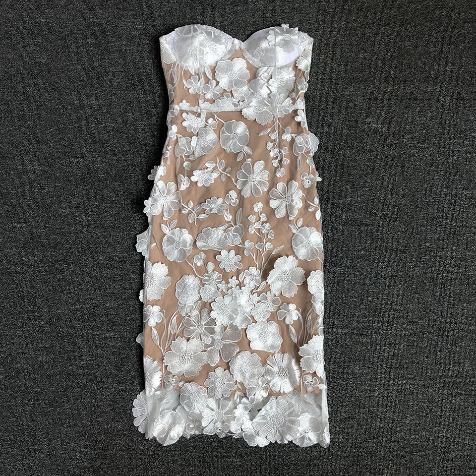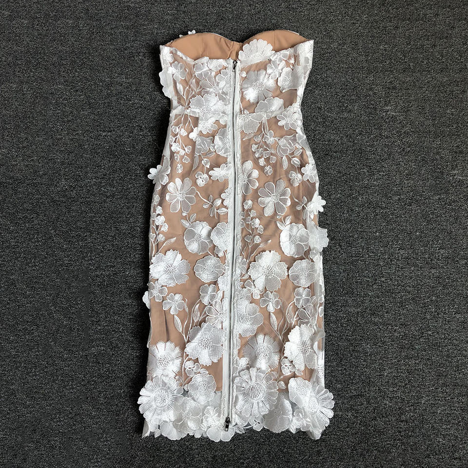 New Fashion Women Sleeveless Off Shoulder Back Zipper Lace Girls Solid Slim Pencil Casual Party Evening Dress